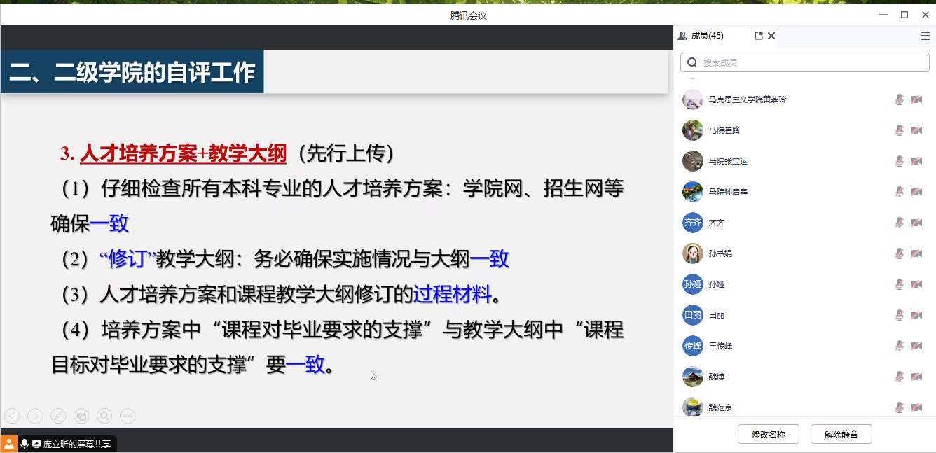 此次培训会内容丰富且针对性强,让大家对审核评估的重要性和课程建设的关键作用有了更清晰的认识,为接下来的审核评估迎评工作打下了坚实基础。在学校迎接本科教育教学审核评估工作的过程中,全体教师将团结一心,以饱满的热情、务实的作风,高质量地完成各项审核评估工作!