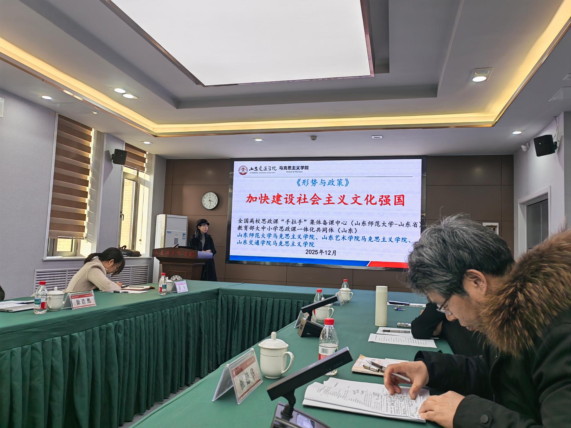 12月26日,我校马克思主义学院形势与政策教研室参加全国高校“手拉手”集体备课会(山东),与山东师范大学、山东艺术学院同仁共同开展专题化、实战化的集体备课活动。本次集体备课会的主题是“加快建设社会主义文化强国”,备课活动在全国高校思政课“云上大练兵”平台全程直播。