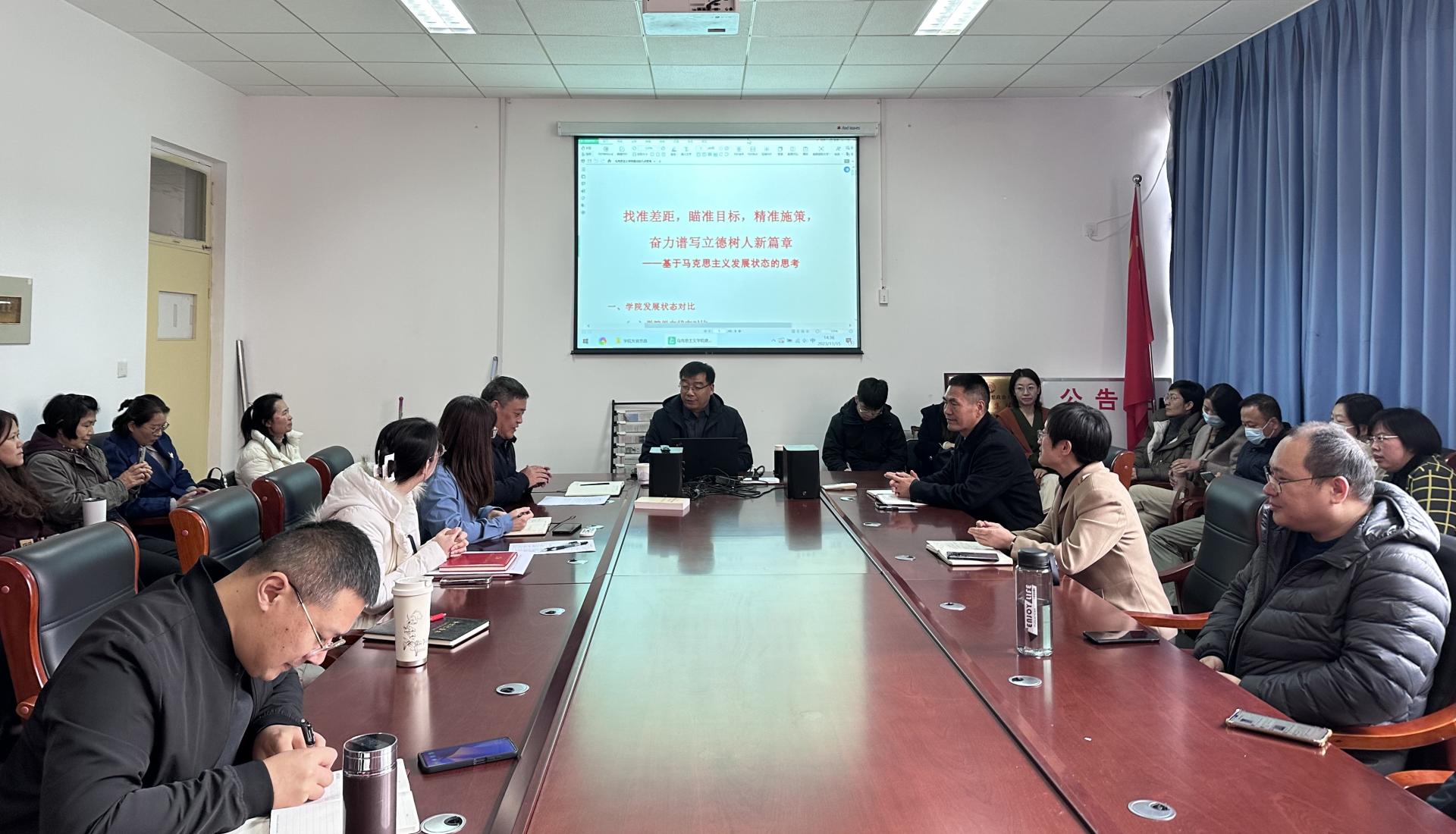 2023年11月15日下午,我院邀请山东建筑大学马克思主义学院张鹏院长举办了一场题为“找准差距 瞄准目标 精准施策 奋力谱写立德树人新篇章”的学术讲座。马克思主义学院全体教师参加讲座,讲座由院长杜永明主持。