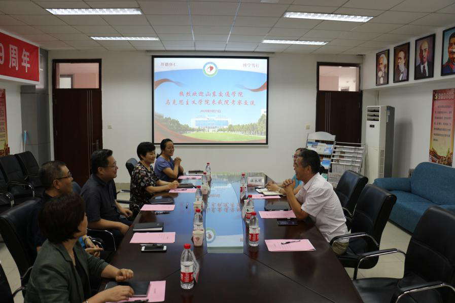 9月15日下午,我院党总支书记林源、副院长胡晓丽一行2人赴山东中医药大学马克思主义学院调研交流。学院领导刘勇军、崔瑞兰马晓亮、郭鹏,院长助理房玉春参加交流会。