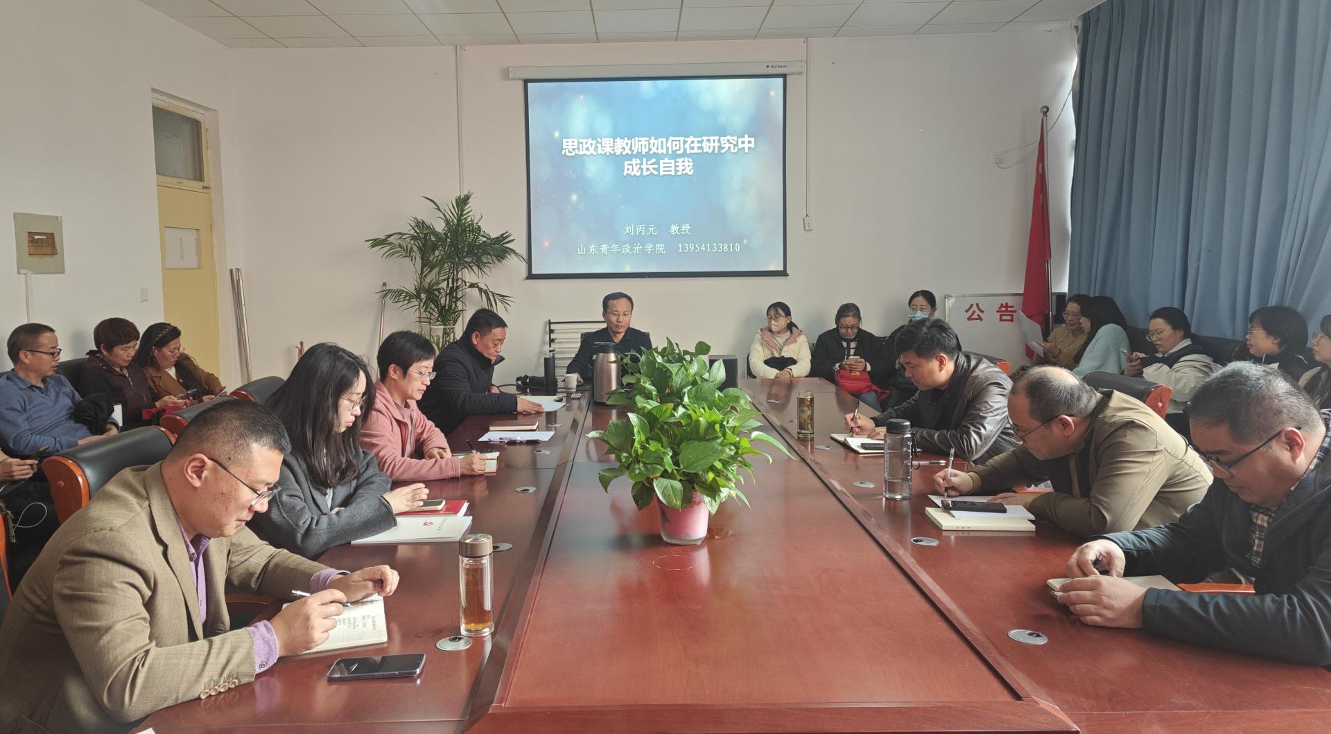 为了进一步提升学院思政课教师的科研能力和专业素养,促进教师在科研道路上的自我成长,11月20日下午,学院特邀请山东青年政治学院马克思主义学院院长刘丙元教授举办专题讲座。讲座由院长杜永明主持,全体思政课教师参加。